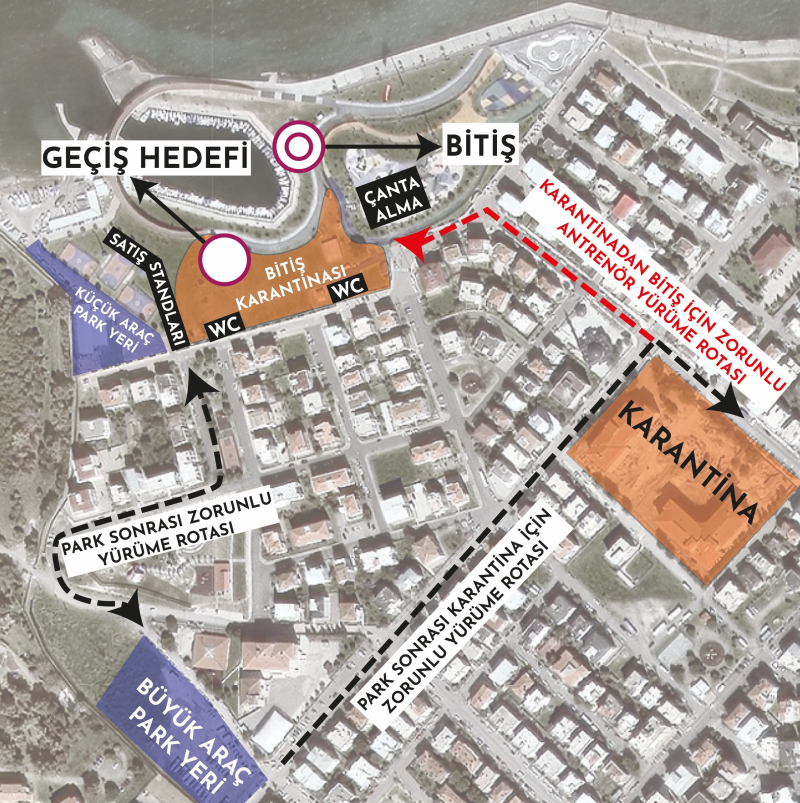 TOŞ 3.Kademe & Bayrak yarışını bitiren sporcuların finish istasyonundan sonra belirlenen rotada yol üzerindeki sarı siyah şeritleri takip ederek bilgisayar masasına erişmeleri gerekmektedir. Yarışmayı tamamlayan / bırakan tüm sporcuların mutlaka bilgisayar masasına uğramaları ve SI'larını okutmaları gerekmektedir.